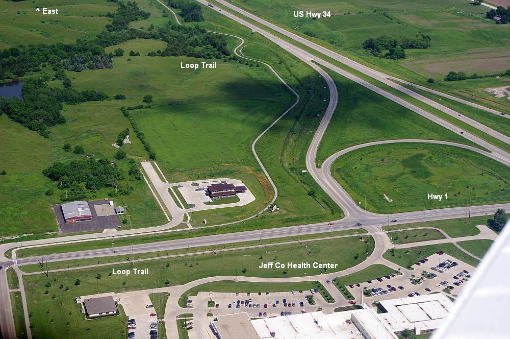 Looking to the east - same view as above. The Loop Trail is to the left of the highway 34.
