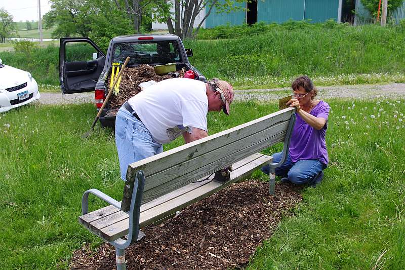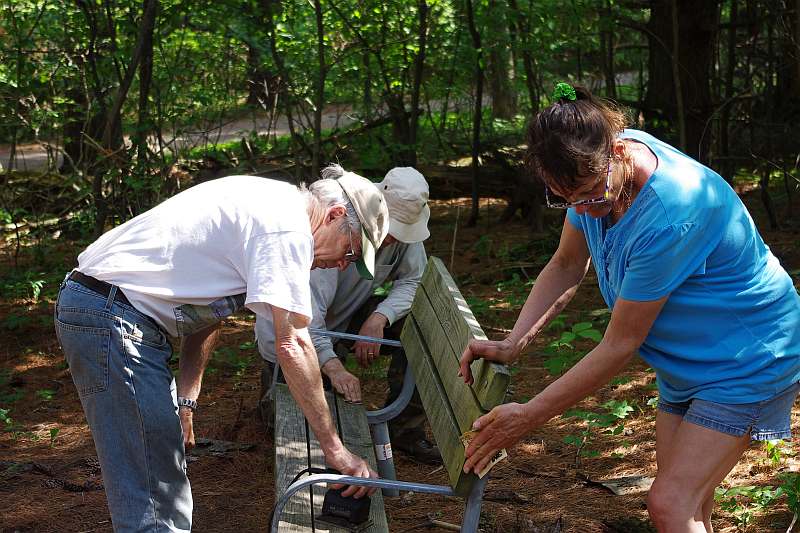 Maintenance Day on the Loop Trail, May 18, 2013. Group Photo from L to R: Cathy Matt, Jami Johnson, Kathy Peck, Kent Rice, Martin Jennings, Kay Hazen, Brad Jennings, Bob Hunerdosse, Stephen Pedrick. In other photos are Dick Arnold and Bob Rutt.