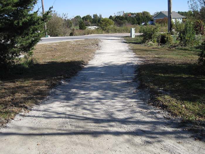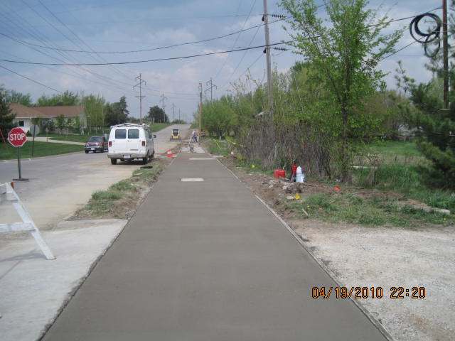 10/07/10. By Nov, concrete has reached the mailboxes, and a packed-dirt surface extends to the Railroad Trail. (jfr)